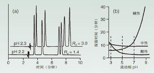 圖2 流動相pH值的微小變化對分離的影響。