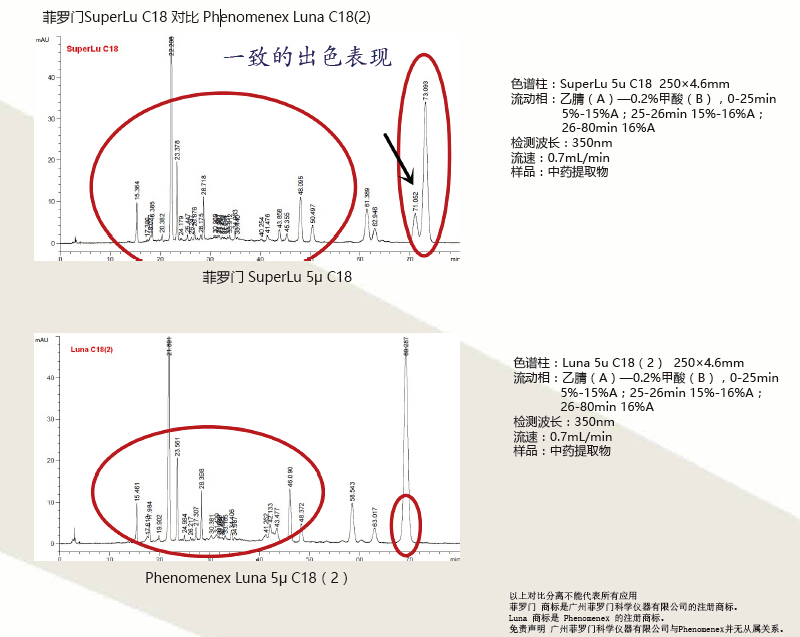 SuperLu 之所以是Super好用的反相色譜柱之一,原因是它始終將目光交集在色譜分離的兩個重要指標:分離度和峰形。