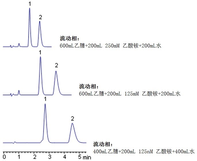這些化合物的洗脫通過流動(dòng)相中離子的強(qiáng)度和乙腈的比例來控制。